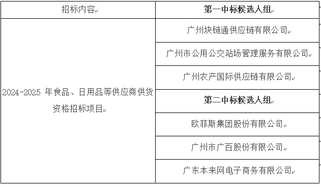 項目名稱:廣州市一汽巴士有限公司、廣州市一汽巴士有限公司工會委員會2024-2025年食品、日用品等供應商供貨資格招標項目