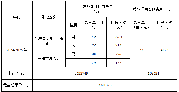 規模:招標內容為2024-2025年員工健康體檢服務項目。(詳細內容請參閱招標文件第四章“用戶需求書”的相關內容。)