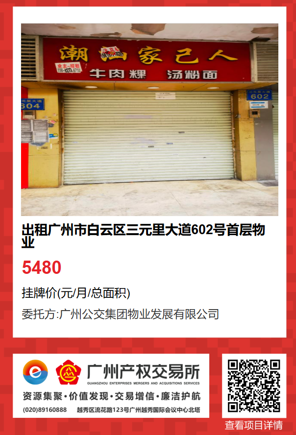 現有廣州市白云區三元里大道602號首層物業出租項目,該項目在廣州公有物業出租平臺網站自掛牌公開招租,歡迎有意向的企業法人或自然人(含個體工商戶)參加應租。現將有關事項說明如下: