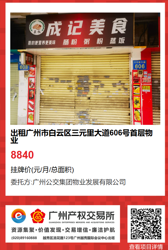 現有廣州市白云區三元里大道606號首層物業出租項目,該項目在廣州公有物業出租平臺網站自掛牌公開招租,歡迎有意向的企業法人或自然人(含個體工商戶)參加應租。現將有關事項說明如下: