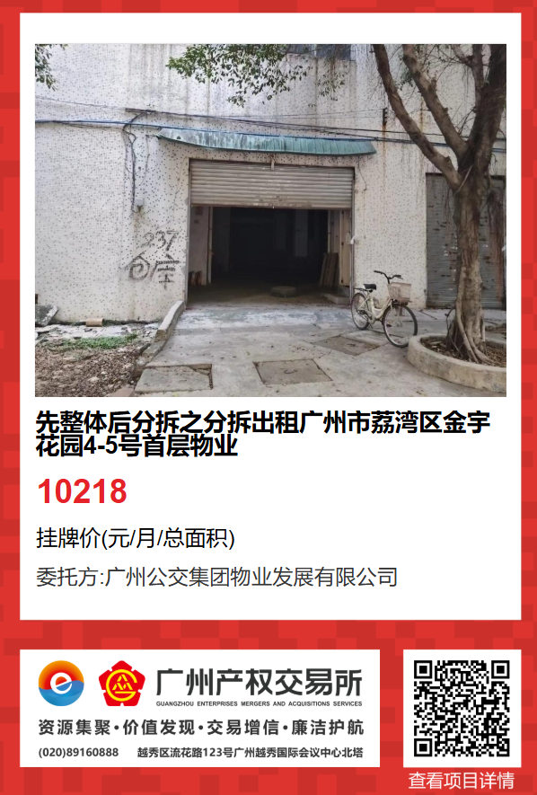 2.分拆掛牌項目為(項目2):先整體后分拆之分拆出租廣州市荔灣區金宇花園4-5號首層區物業(項目編號:GZ2025RD1004616),出租面積為306.84㎡;