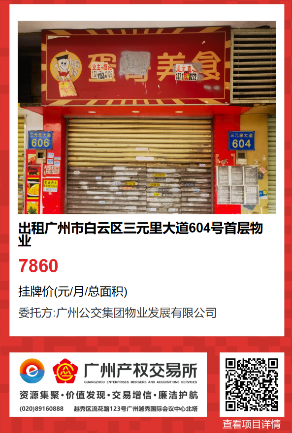 (一)項目名稱:出租廣州市白云區三元里大道604號首層物業。