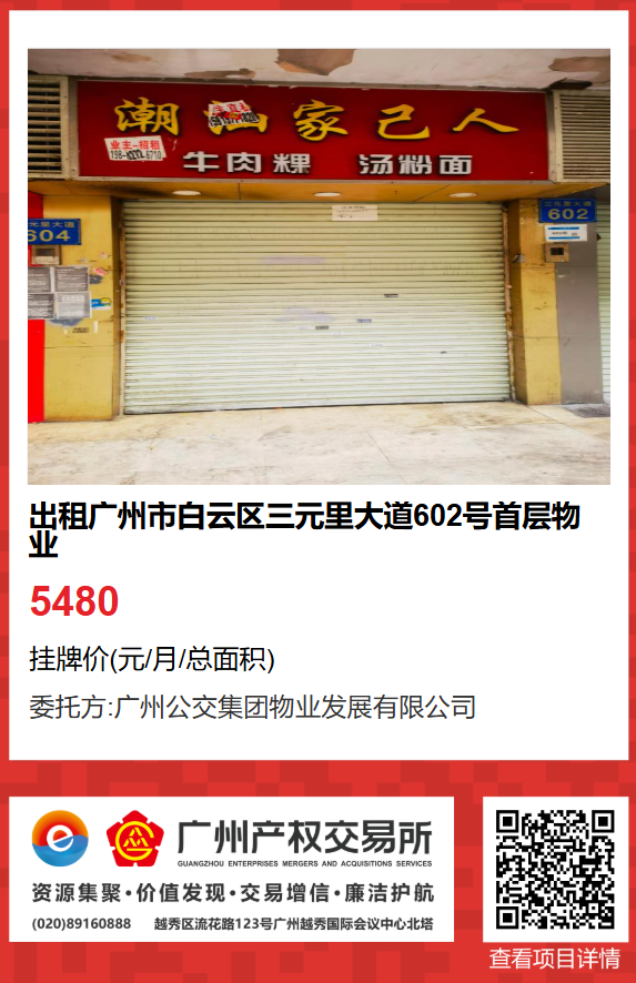 現有廣州市白云區三元里大道602號首層物業出租項目,該項目在廣州公有物業出租平臺網站自掛牌公開招租,歡迎有意向的企業法人或自然人(含個體工商戶)參加應租。現將有關事項說明如下: