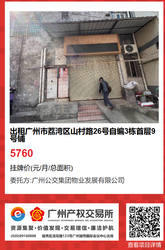 (一)項目名稱:出租廣州市荔灣區(qū)山村路26號自編3棟首層9號鋪物業(yè)。