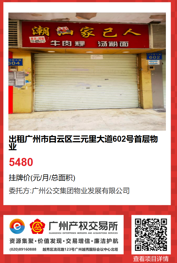 現(xiàn)有廣州市白云區(qū)三元里大道602號(hào)首層物業(yè)出租項(xiàng)目,該項(xiàng)目在廣州公有物業(yè)出租平臺(tái)網(wǎng)站自掛牌公開(kāi)招租,歡迎有意向的企業(yè)法人或自然人(含個(gè)體工商戶)參加應(yīng)租。現(xiàn)將有關(guān)事項(xiàng)說(shuō)明如下: