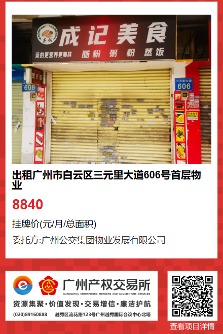 現有廣州市白云區三元里大道606號首層物業出租項目,該項目在廣州公有物業出租平臺網站自掛牌公開招租,歡迎有意向的企業法人或自然人(含個體工商戶)參加應租。現將有關事項說明如下: