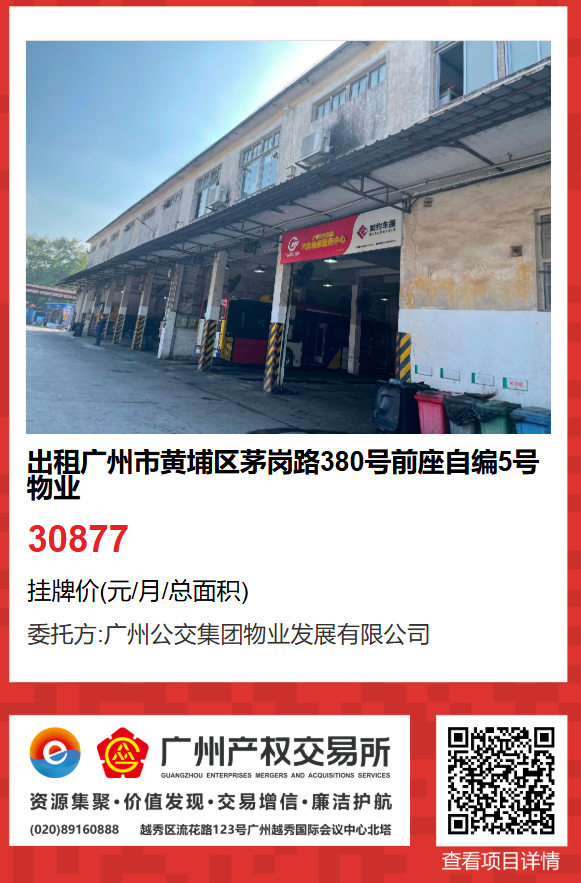 現(xiàn)有廣州市黃埔區(qū)茅崗路380號前座自編5號物業(yè)出租項目。該項目在廣州產(chǎn)權交易所網(wǎng)站掛牌公開招租,歡迎有意向的企業(yè)法人或自然人(含個體工商戶)參加應租。現(xiàn)將有關事項說明如下: