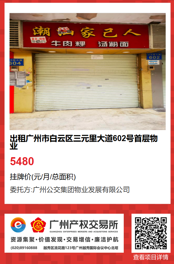 現有廣州市白云區三元里大道602號首層物業出租項目,該項目在廣州公有物業出租平臺網站自掛牌公開招租,歡迎有意向的企業法人或自然人(含個體工商戶)參加應租?,F將有關事項說明如下: