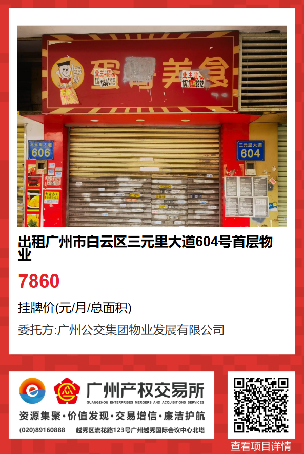 現有廣州市白云區三元里大道604號首層物業出租項目,該項目在廣州公有物業出租平臺網站自掛牌公開招租,歡迎有意向的企業法人或自然人(含個體工商戶)參加應租?,F將有關事項說明如下: