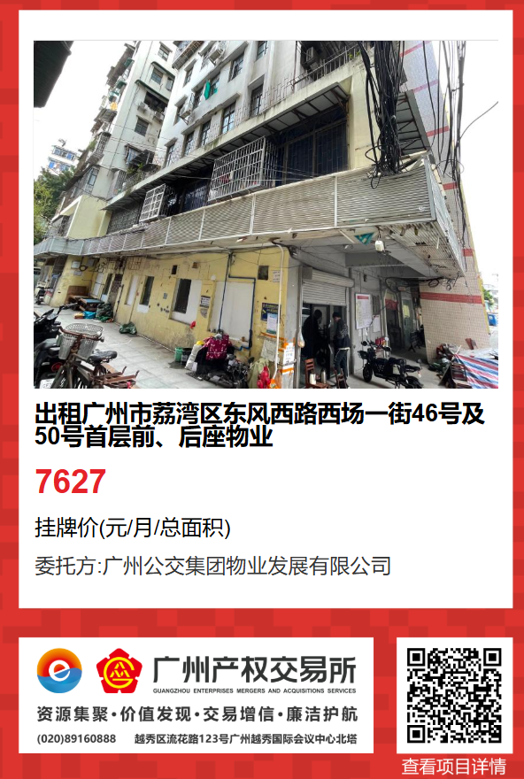 現有廣州市荔灣區東風西路西場一街46號及50號首層前、后座物業出租項目,該項目在廣州公有物業出租平臺網站自掛牌公開招租,歡迎有意向的企業法人或自然人(含個體工商戶)參加應租。現將有關事項說明如下: