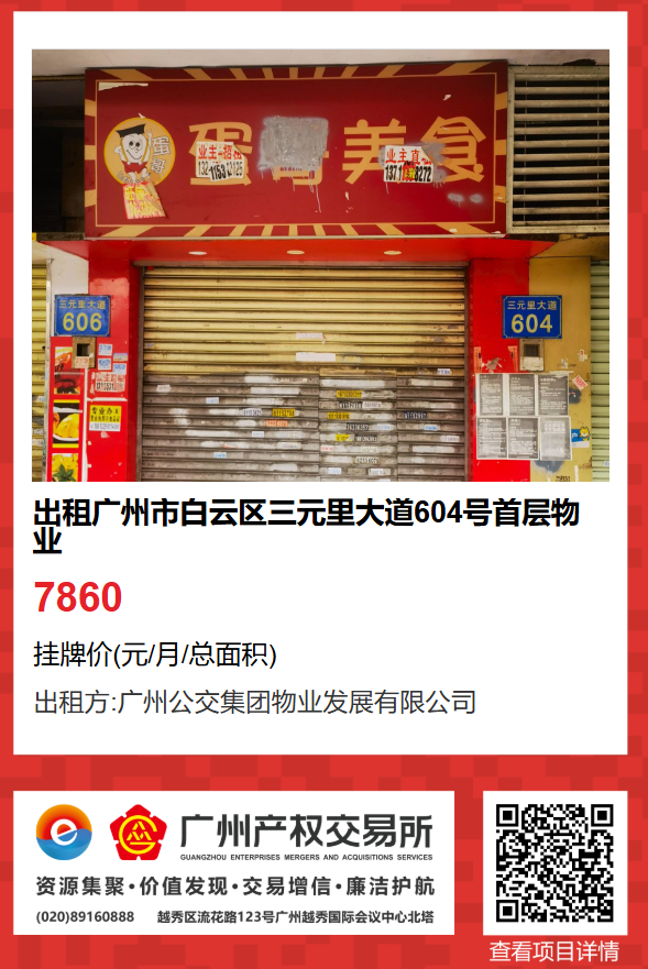 現有廣州市白云區三元里大道604號首層物業出租項目,該項目在廣州公有物業出租平臺網站自掛牌公開招租,歡迎有意向的企業法人或自然人(含個體工商戶)參加應租。現將有關事項說明如下: