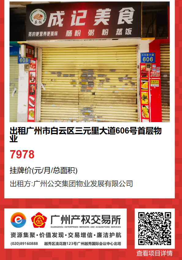 現有廣州市白云區三元里大道606號首層物業出租項目,該項目在廣州公有物業出租平臺網站自掛牌公開招租,歡迎有意向的企業法人或自然人(含個體工商戶)參加應租。現將有關事項說明如下: